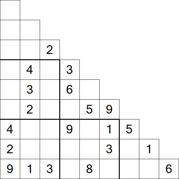 • Dreieckiges Gitter: Im Gegensatz zum Sudoku ist das Gitter dreieckig, was die Anordnung und Form der Teilbereiche sowie die Ausrichtung von Reihen und Spalten verändern kann.